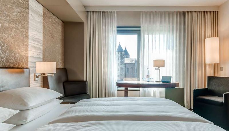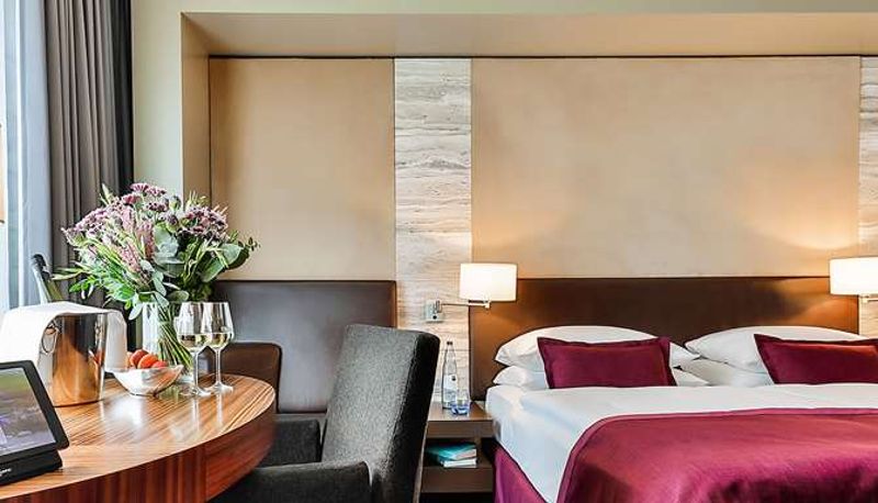 The Dorint Hotel am Heumarkt offers you luxury in the middle of the city center. The panoramic elevator with cathedral view will take you to your chic room, which contains everything you need to relax.